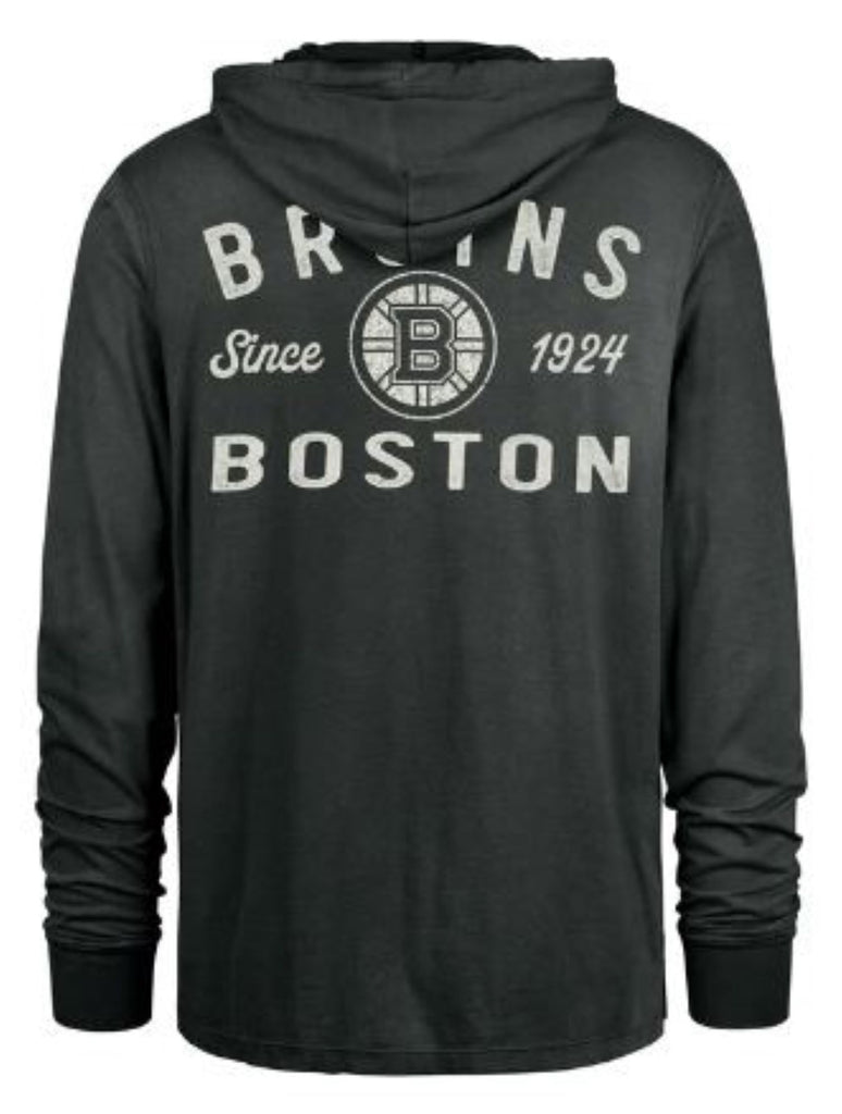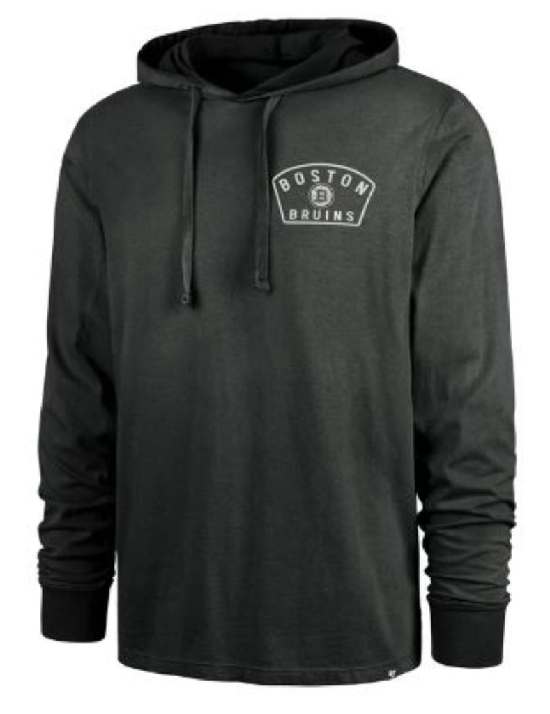 Show off your team pride in vintage-inspired comfort with the ’47 Dusted Overhand River Jersey Hoodie. This standout pullover features a soft, garment-washed black finish that delivers a uniquely worn-in look. With retro-style team graphics on the chest and back, a drawstring hood, and rib-knit cuffs, it blends modern comfort with old-school hockey heritage—perfect for game day or everyday wear.