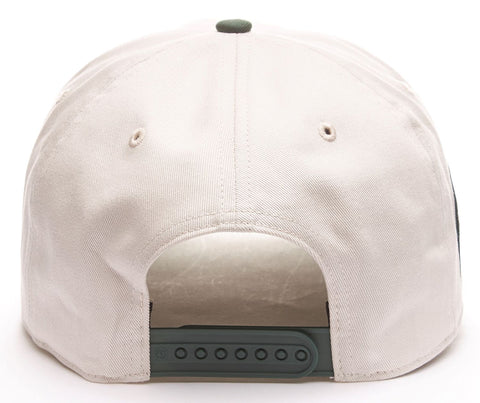 This '47 NCAA Hitch Michigan State Crosstown Script Rope Adjustable Snapback Hat combines a vintage look with modern style. Featuring a cream and green color scheme, it boasts a classic script logo that pays homage to Michigan State's heritage.