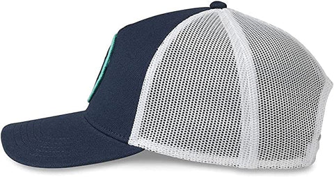 Neoprene structured crown with mesh side and back paneling. Pre-curved visor with tonal stitch and grey twill undervisor. Adjustable plastic snapback. Screen printed graphic with thick plastisol printed details.