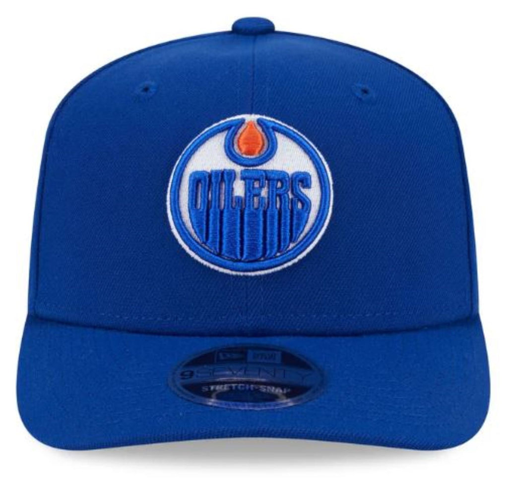 The Edmonton Oilers 9SEVENTY Stretch-Snap features an embroidered Oilers Logo at the front panels with a matching woven team tag at an adjustable snapback closure at the rear and a gray undervisor.