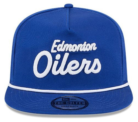 This New Era The Golfer hat instantly upgrades your Edmonton Oilers gear. A high crown offers a classic look, while a snapback closure allows for a custom fit. The bold Oilers embroidery team text on the front and the sidepatch logo on the right side provide an authentic, standout look.