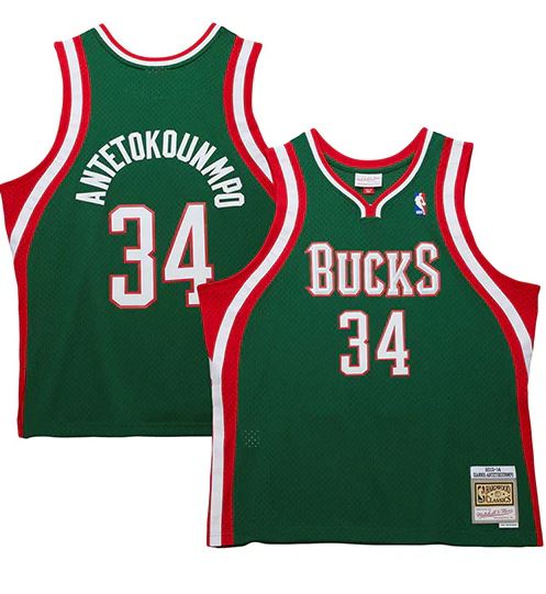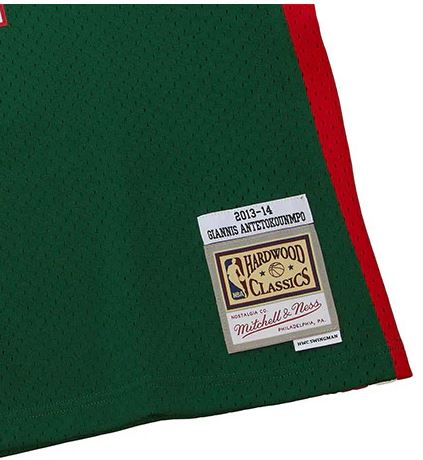 Honor the early days of a modern legend with the Mitchell & Ness NBA Milwaukee Bucks Giannis Antetokounmpo #34 2013-14 HWC Swingman Jersey in Green. This throwback jersey pays tribute to Giannis’ rookie season, featuring heat-sealed twill name and number graphics that highlight his rise to stardom. Designed with a breathable mesh body and rib-knit detailing, it delivers comfort and authenticity, making it the perfect piece for fans looking to celebrate the beginnings of the Greek Freak’s NBA journey.