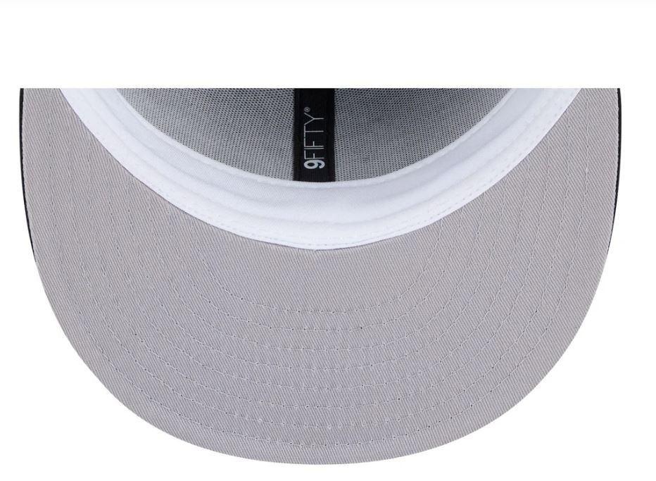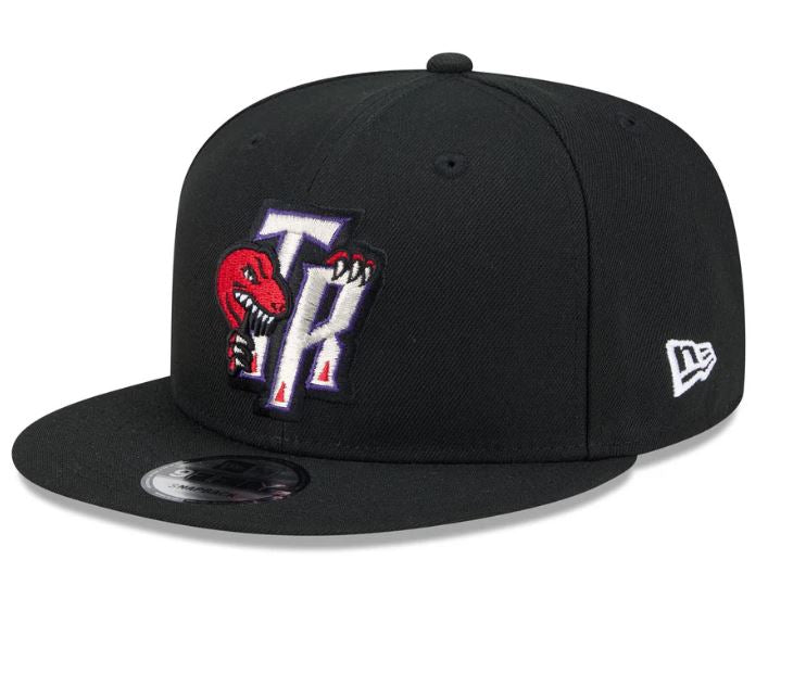 The Toronto Raptors 1995-2007 Hardwood Classics 9FIFTY Snapback features an embroidered vintage Raptors logo at the front panels with the NBA Logoman at the right-wear side. Additional details include an adjustable snapback closure at the rear and a gray undervisor