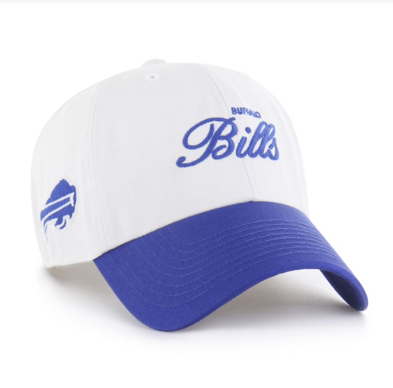Top off your game day look with the '47 NFL Buffalo Bills Foundational TT Clean Up Hat in White and Blue. Made from soft, garment-washed cotton, this unstructured cap delivers a relaxed fit and all-day comfort. The bold embroidered Bills logo stands out on the crown, while the adjustable strapback closure ensures a secure, personalized fit. With its clean design and subtle two-tone colorway, this hat is a versatile staple for any loyal fan.