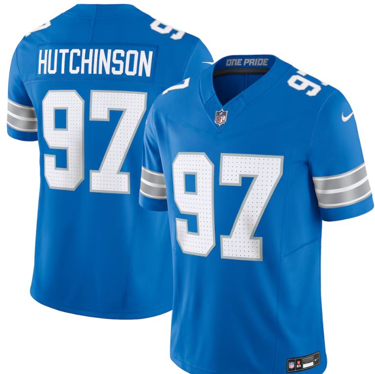 Walking into the stadium, a wave of excitement hits you. You adjust your Detroit Lions Limited jersey and instantly feel game-ready. Designed for fans who want true on-field authenticity, this Vapor F.U.S.E. edition features streamlined seamlines and a chainmaille mesh grill at the neckline. Updated details like sublimated twill name and numbers are heat-applied to the front and back for a crisp, modern finish. Lightweight, breathable fabric with built-in Dri-FIT technology keeps you cool as you cheer on Aidan Hutchinson all game long.