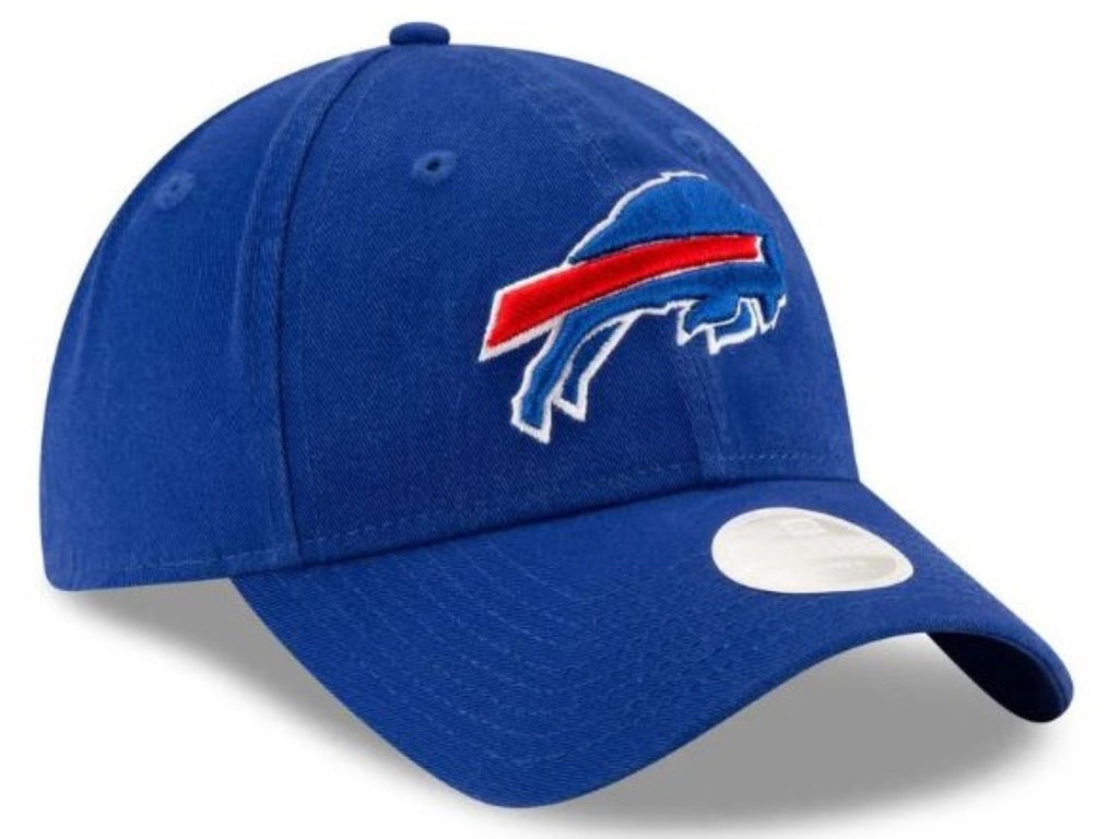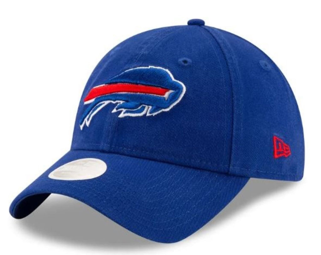 The Buffalo Bills Core Classic Women's 9TWENTY Adjustable Cap features an embroidered Bills logo at the front panels with a team tag on an adjustable D-Ring closure at the rear.