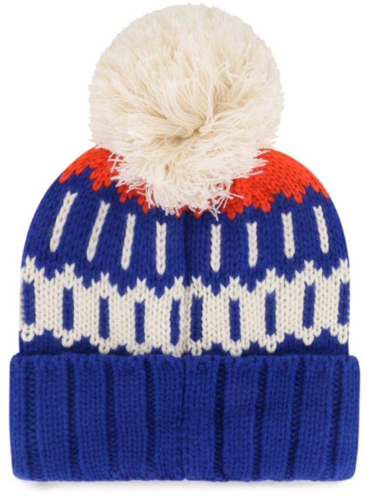 Stay warm while showing your team pride with the ’47 Edmonton Oilers Felicity Cuff Knit Pom Beanie. Featuring team colors of blue and white with a soft knit design, this beanie offers cozy comfort all season long. The embroidered Oilers logo and playful pom on top add a classic touch of fan style perfect for game days or everyday wear.
