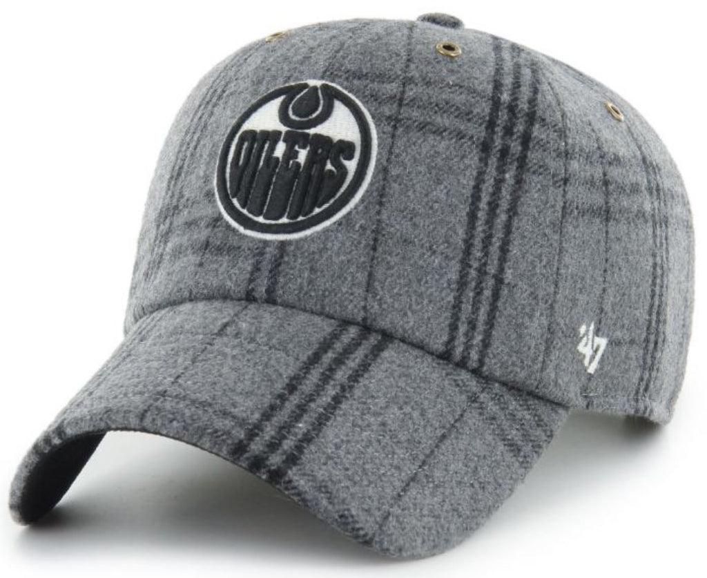 '47 NHL Edmonton Oilers Windowpane Plaid Clean Up Adjustable - Grey