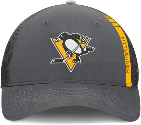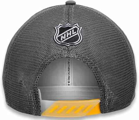 Rep the Vegas Golden Knights with this Fanatics NHL Authentic Pro Adjustable Trucker Hat. Designed in a versatile grey colorway, this hat features a structured front panel with breathable mesh back panels for all-day comfort. Finished with an adjustable snapback closure and official team branding, it’s perfect for game days, casual wear, or adding a clean NHL look to your everyday lineup.