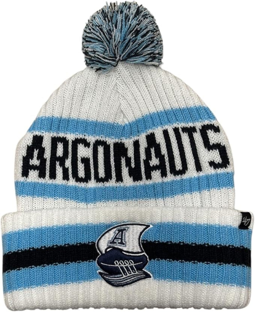 Toronto Argonauts '47 Bering Cuff Knit Toque is a stylish and cozy hat perfect for fans looking to showcase their team pride. Crafted from 100% acrylic, it features a ribbed roll-up cuff, an embroidered team logo on the cuff, and a pom on top. This officially licensed product is designed to keep you warm while supporting the Toronto Argonauts.
