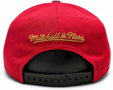 Show your pride for Canadian hockey heritage with this bold and premium snapback from Mitchell & Ness. Featuring a structured Pro Crown Fit silhouette, this hat combines patriotic detail with athletic styling. The red crown is detailed with an all-over tonal maple leaf embroidery, contrasted by a black curved brim finished with a gold embroidered maple leaf on the visor. The iconic Hockey Canada logo is embroidered front and center, while a gold Mitchell & Ness script is stitched across the back. Finished with a snapback closure for a custom fit, this is a must-have for any hockey fan or streetwear collector.